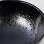 The Black Pearl Udon Bowl 19cm combines sleek matte black with a striking gloss black splash, that catches the light, reflecting cyan highlights. Perfect for serving your favorite udon or noodle dishes.