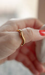 Make a statement with Nordic Muse's Gold Irregular Band Ring. A unique, sleek design paired with a smooth, polished surface exudes elegance, without sacrificing durability. Its Tarnish-Resistant 18K Gold plating makes it perfect for everyday wear, and its water-resistant and hypoallergenic properties ensure peace of mind. Plus, it comes with a complimentary gift box, making it perfect for gifting!