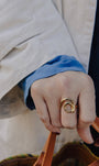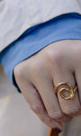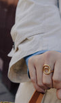 The gold spiral swirl ring has a sculptural loop design with smooth curves that wrap your finger. Made from stainless steel with 18k gold plating, it’s durable and water-resistant. Hypoallergenic and tarnish-free, it’s perfect for everyday wear with a modern touch.