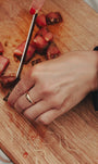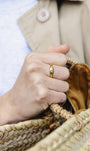 The gold stone embossed band ring is a stylish, waterproof piece made from durable stainless steel with 18k gold plating. Its tarnish-resistant, hypoallergenic finish keeps it shining and comfortable, perfect for stacking or wearing alone every day.