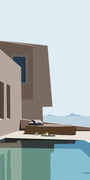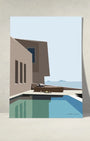 Minimalist illustration art print of a house in Santorini, Greece. The artist, Donna, was inspired by the beautiful architecture of Kapsimalis and the photography of Giorgos Sfakianakis.