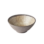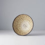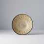 The Nin Rin range features a circular sweep of golden ochre over the signature 'Earth' glaze. No two pieces are the same due to a unique hand glazing technique used to create the swirling pattern.