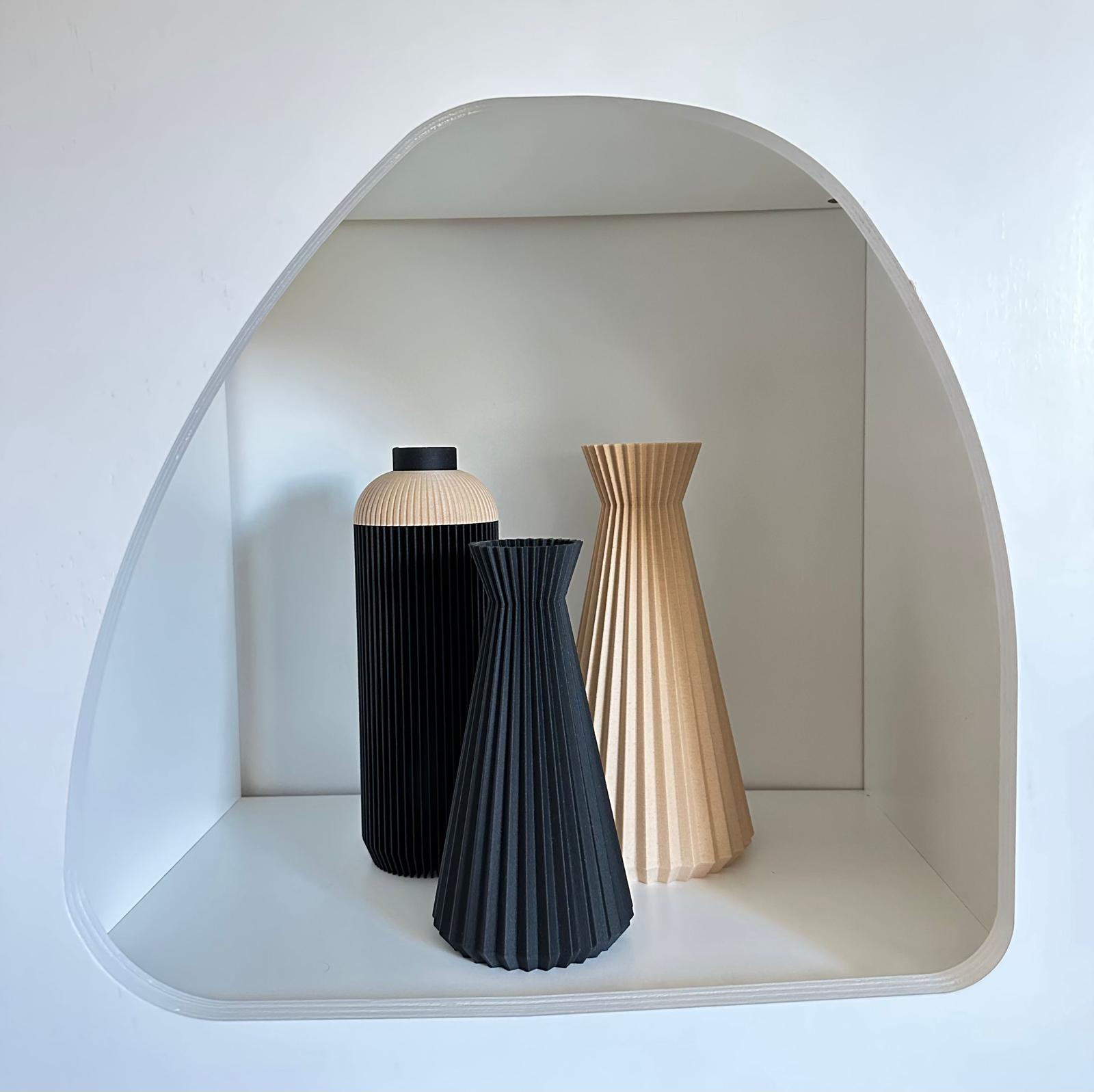 Bring an original touch to your home decor with the 'Onde Vase' from Minimum Design. 3D printed in wood, this piece is perfect for displaying your dried flowers. It's an ideal gift for plant lovers and is made from a sustainable material – a mix of recycled wood fibers and bio-plastic made from corn.