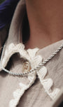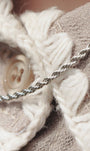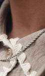 This silver rope twist necklace is perfect for layering or wearing alone with a simple tank top or white T-shirt. Made from stainless steel and sterling silver, it’s durable and shiny thanks to a PVD coating. The materials resist tarnishing, are hypoallergenic, and water-resistant for comfortable, care-free, everyday wear.